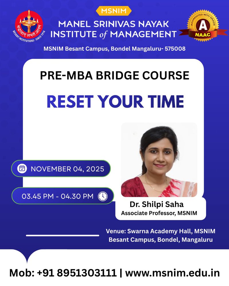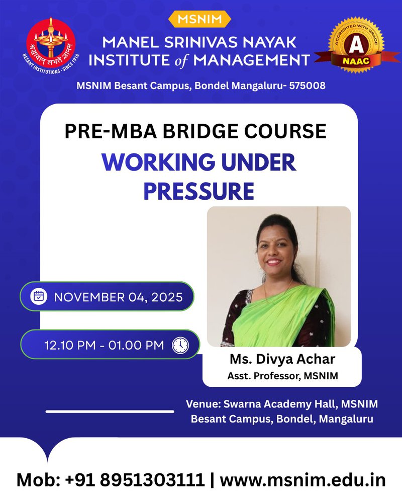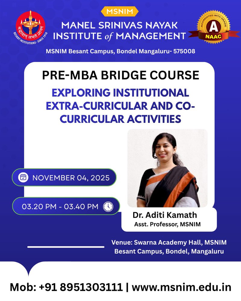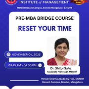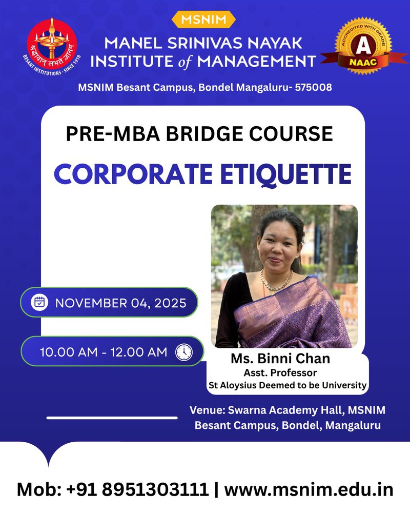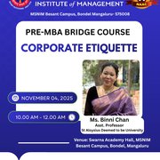 Pre-MBA Orientation Program for 27th Batch - Corporate Etiquette, Working under Pressure, Exploring Institutional Extra-curricular and Co-curricular activities, Rest your Time November 4, 2025 Previous: Pre-MBA Orientation Program for 27th Batch - Welcome from Director Desk, Ice Breaker, Cracking Aptitute, Launch of Bajaj Finserve, Counselling Next: Pre-MBA Orientation Program for 27th Batch - Discipline and POSH, Library Management Resources, Placements, Treasure Hunt