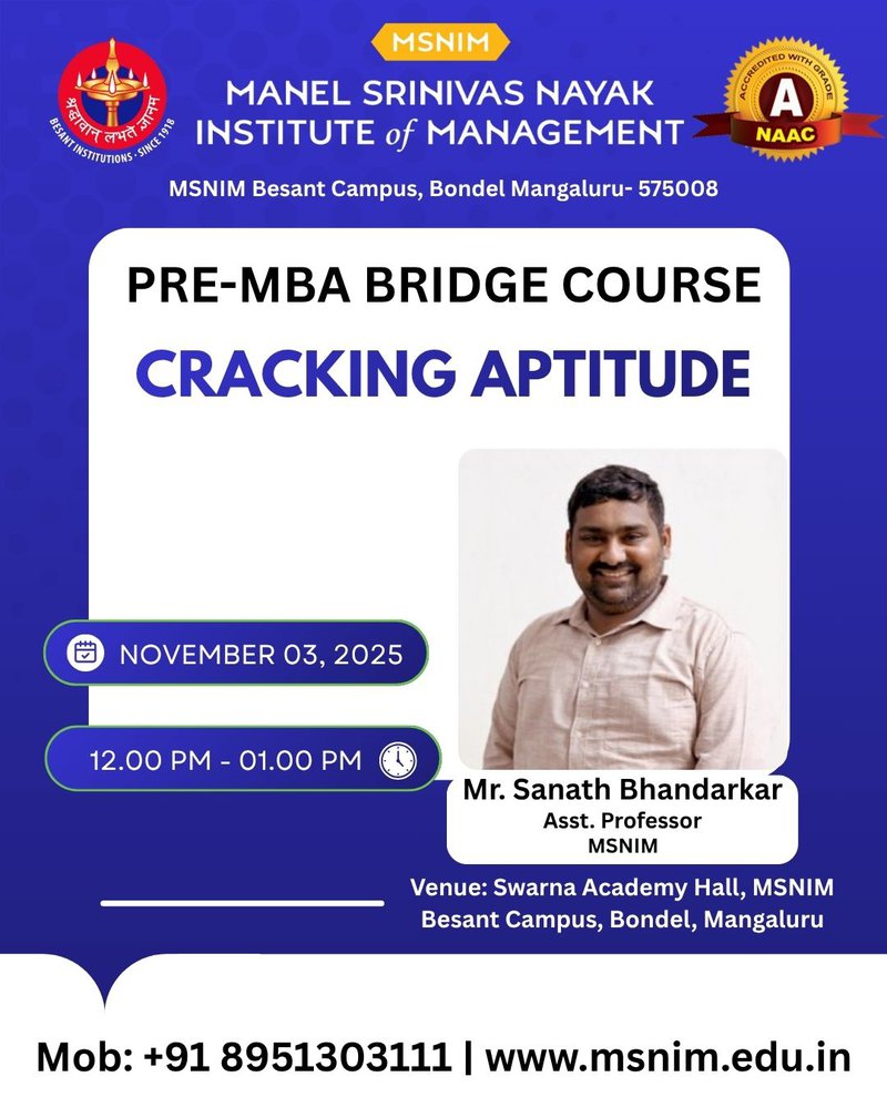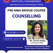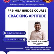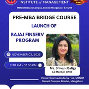 Pre-MBA Orientation Program for 27th Batch - Welcome from Director Desk, Ice Breaker, Cracking Aptitute, Launch of Bajaj Finserve, Counselling November 3, 2025 Previous: Deeksharambh - Orientation Program for 27th Batch Students Next: Pre-MBA Orientation Program for 27th Batch - Corporate Etiquette, Working under Pressure, Exploring Institutional Extra-curricular and Co-curricular activities, Rest your Time