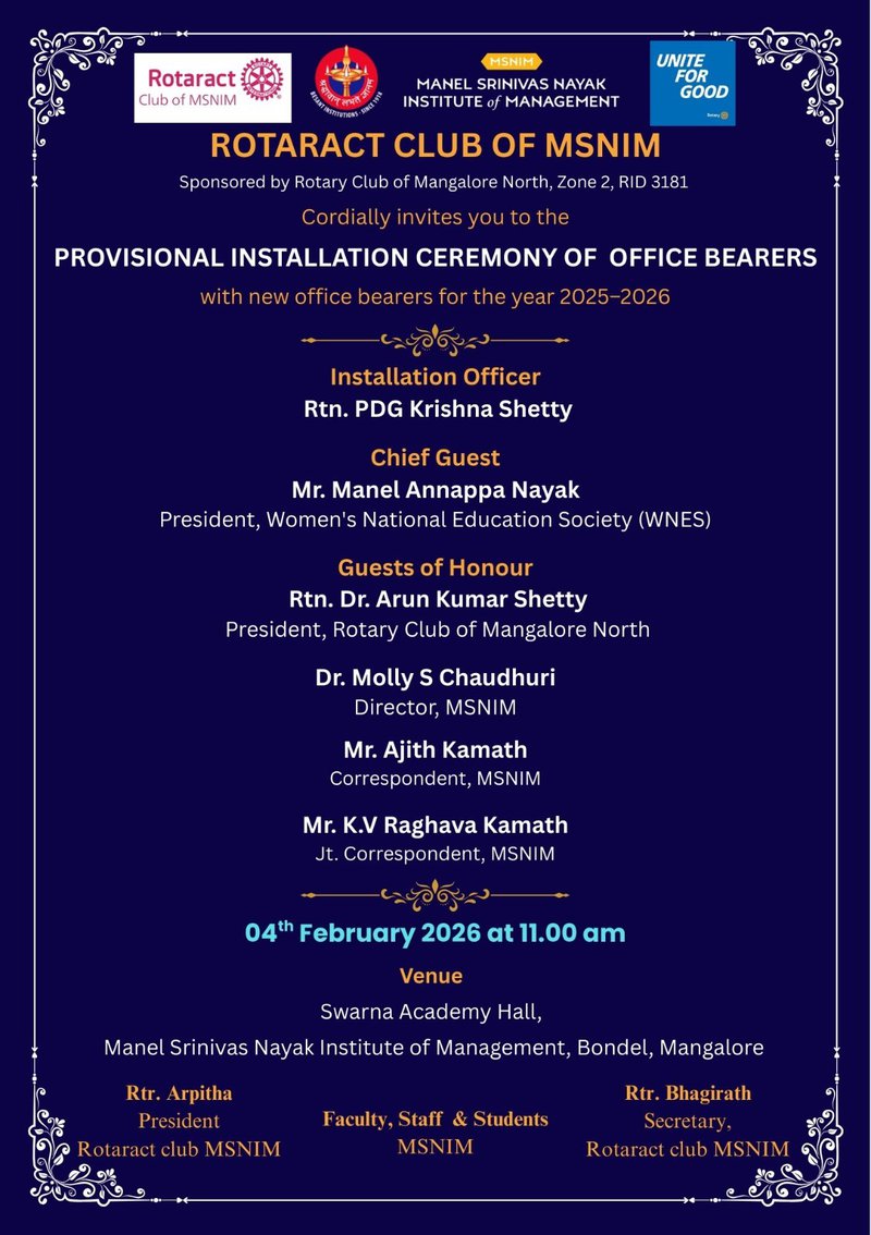 Provisional Installation Ceremony of Office Bearers (Rotaract Club of MSNIM ) February 4, 2026 Previous: Martyrs' Day