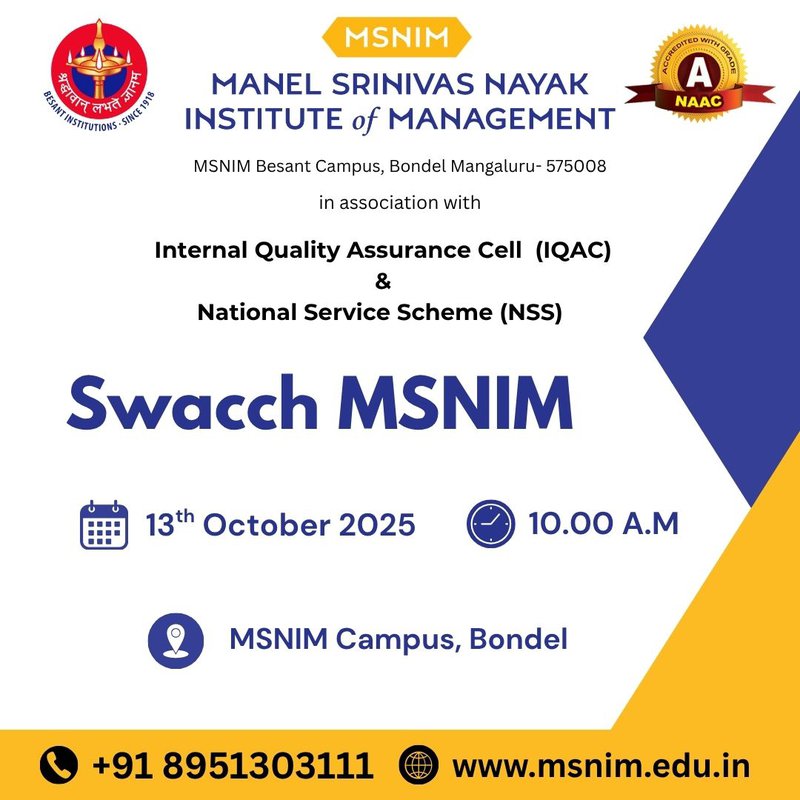 Swacch MSNIM October 13, 2025 Previous: Annual Day - 2025 Next: MRPL-MSNIM Vigilance Awareness Competition 2025