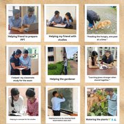 The event featured a variety of initiatives through which students extended support to their peers, community, animals, and the environment. Under academic support and peer learning, students helped classmates prepare presentations, guided juniors in their studies, and shared knowledge to promote collaborative growth. Acts of kindness included feeding stray dogs, assisting hostel staff and canteen workers with food preparation and meal service, and donating blood to save lives.