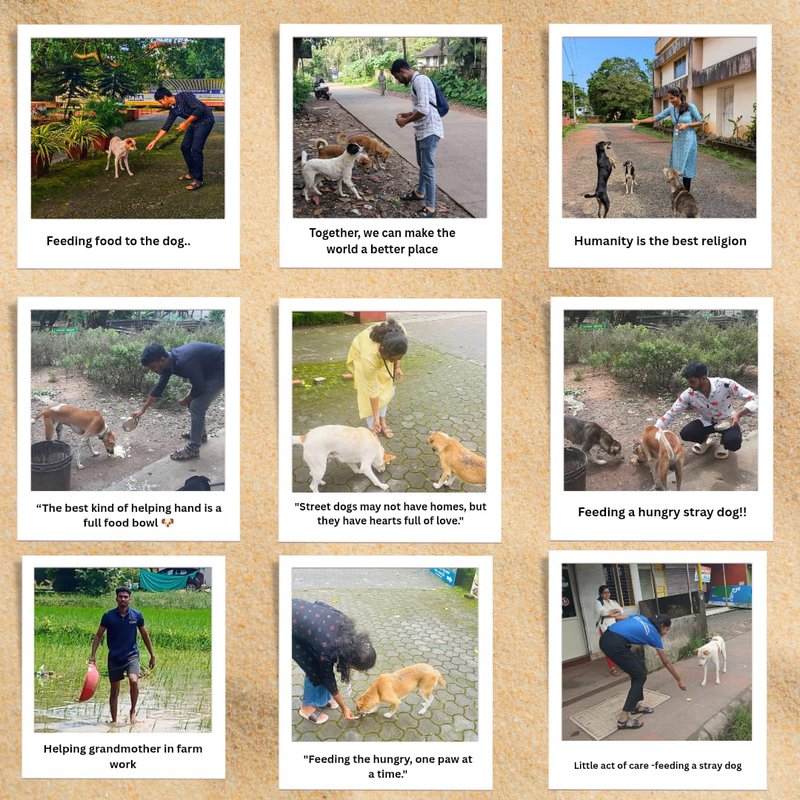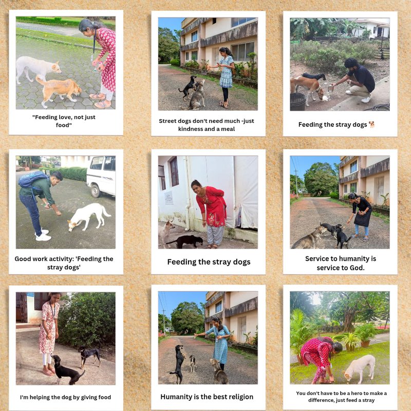 The event featured a variety of initiatives through which students extended support to their peers, community, animals, and the environment. Under academic support and peer learning, students helped classmates prepare presentations, guided juniors in their studies, and shared knowledge to promote collaborative growth. Acts of kindness included feeding stray dogs, assisting hostel staff and canteen workers with food preparation and meal service, and donating blood to save lives.